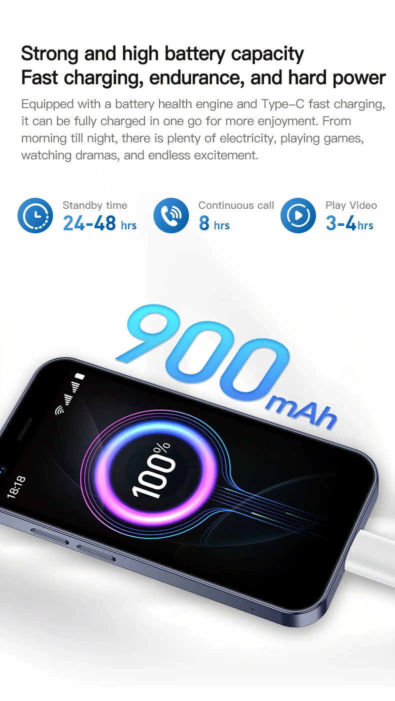 Charge the phone for 3-5 hours before initial use. Please use a 5V1A charger.